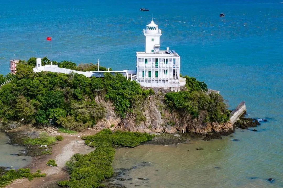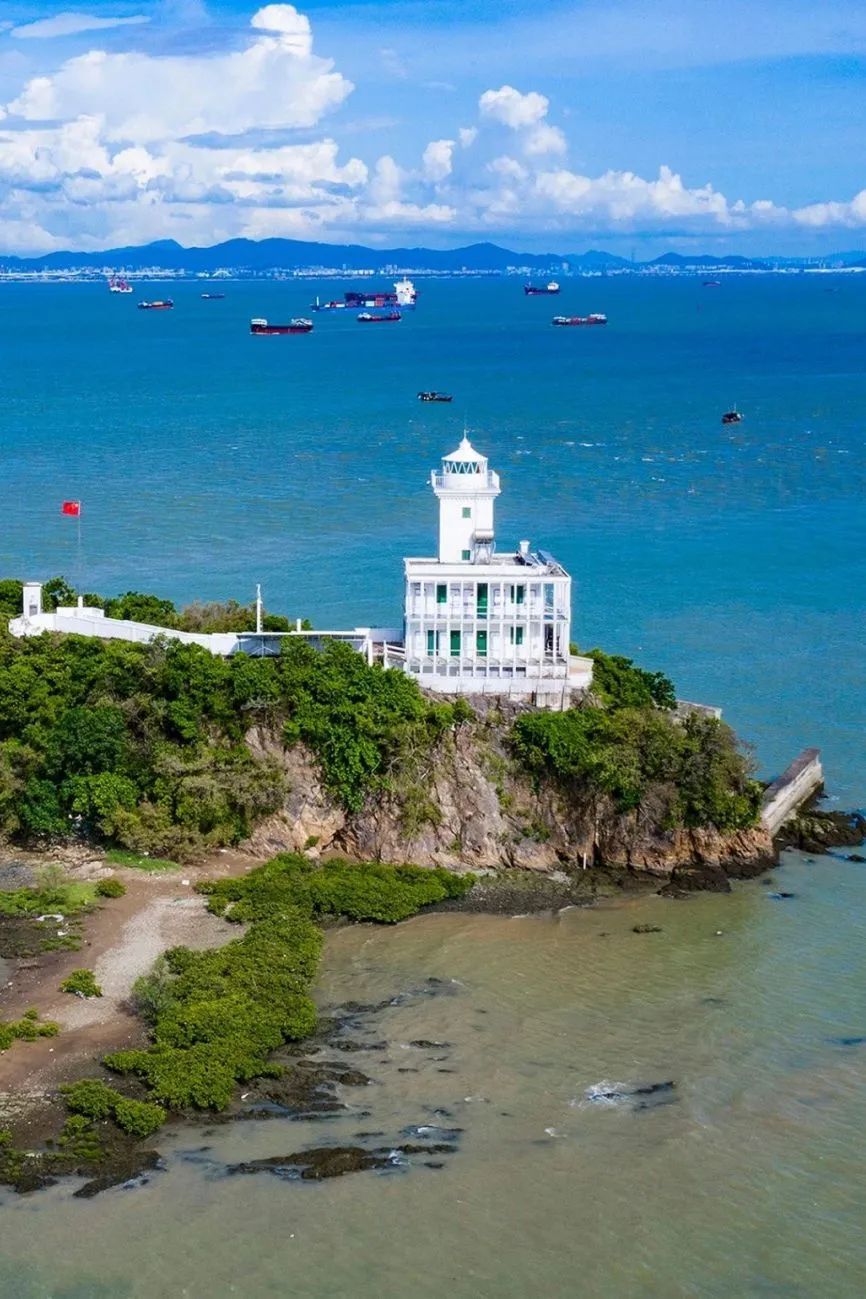 这座面积仅3亩的孤岛上,七分礁石、三分茅草,因其俯瞰的形状像海面上的舢舨,故名舢舨洲。其上矗立着一座有百年历史的灯塔,被誉为“珠江口上的夜明珠”。